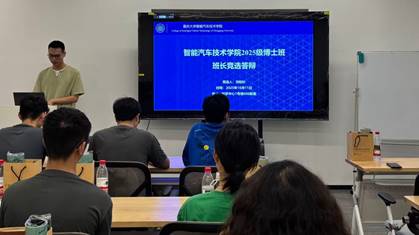 此次班会暨班委选举大会的顺利召开,不仅让2025级研究生对学院发展、培养要求及研途规划有了更清晰的认知,更构建了班级管理的坚实基础,凝聚了年级向心力。相信在学院的悉心指导和新一届班委的带领下,2025级研究生必将以饱满的热情、昂扬的姿态投身智能汽车技术领域的学习与研究,在新征程上笃行不怠,绽放青春光彩。